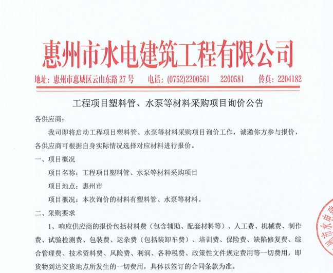 惠州市水電建筑工程有限公司成立于一九六四年四月,隸屬惠州市水務(wù)集團(tuán)有限公司,是一家國(guó)有綜合性施工企業(yè),主營(yíng)水利水電工程、房屋建筑、市政工程等施工業(yè)務(wù)。公司擁有水利水電工程施工總承包一級(jí)、建筑工程施工總承包一級(jí)、市政公用工程施工總承包一級(jí)、公路工程施工總承包三級(jí),公路路基、路面及建筑裝修裝飾專(zhuān)業(yè)承包二級(jí),環(huán)保工程、機(jī)電安裝、河湖整治、輸變電工程專(zhuān)業(yè)承包三級(jí)等經(jīng)營(yíng)資質(zhì)……
